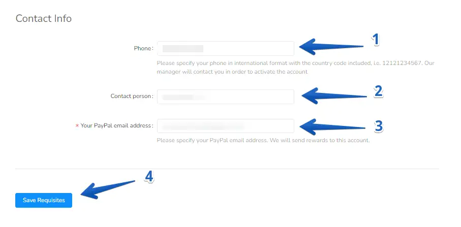 - After filling in the fields, click on "Save Requisites."