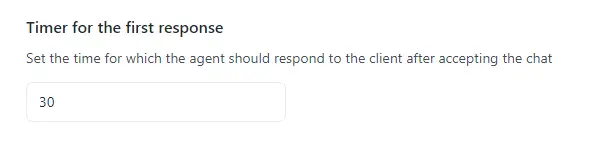 3. In the Timer for the first response field, set the time for the agent to answer the client after receiving the chat (the default time is 30 seconds).