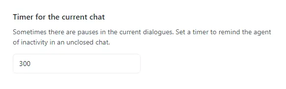 4. In the Timer for the current chat field, specify the time after which the system will remind the agent of the inactivity in the open chat.