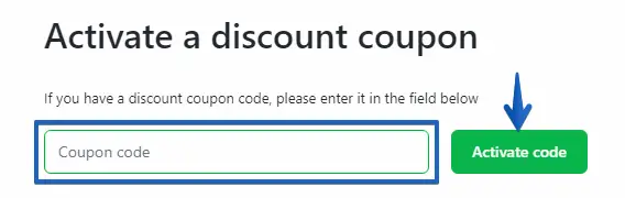 2. Now simply type your discount coupon code in the indicated field and press "Activate code".