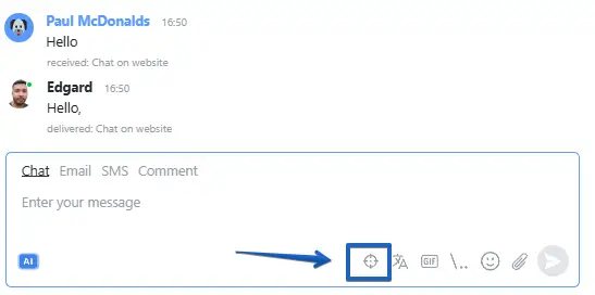 While in a conversation, click on the icon shown in the image below to open the Indicator feature.