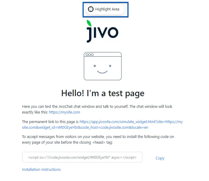 A copy (not a mirror) of the page the visitor is currently on will open in your app. Click the "Highlight an area" button.
