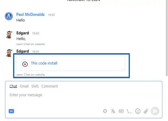 From the visitor/customer's side, they will see a message like the one shown below in the chat widget on your website.