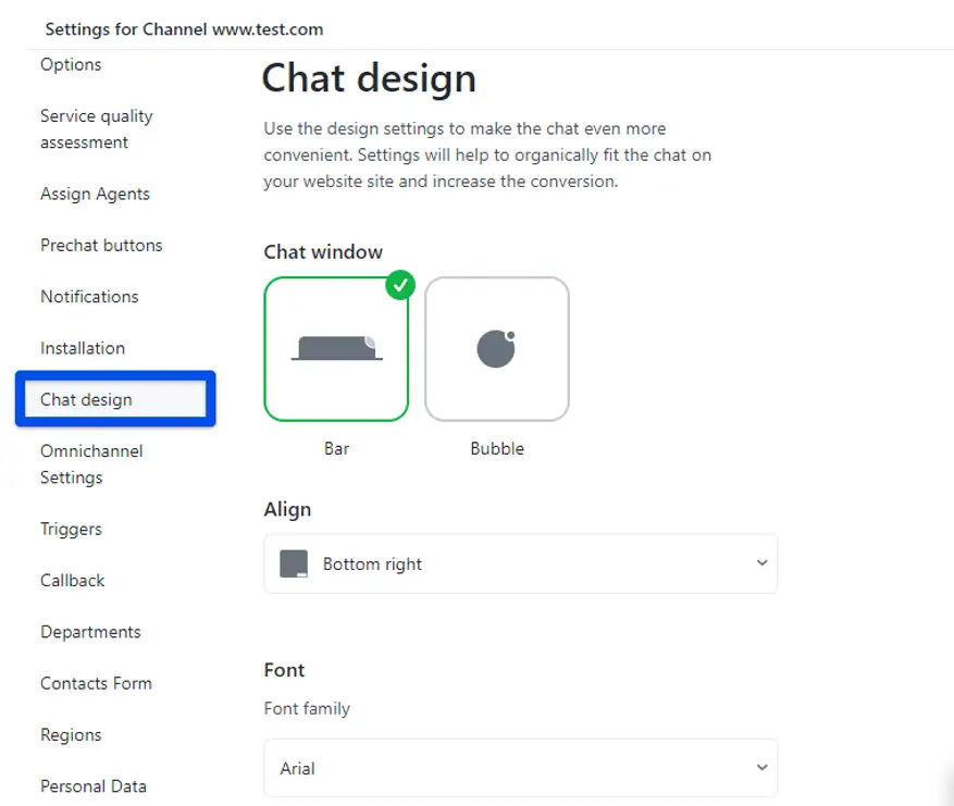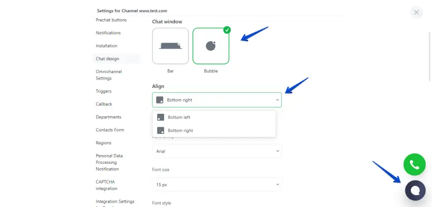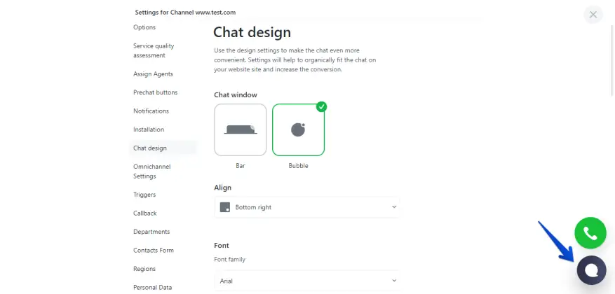 Now you can customize the shape of the chat window. The icon you choose will be displayed on the site in the desktop version. The Bubble chat icon will look like this: