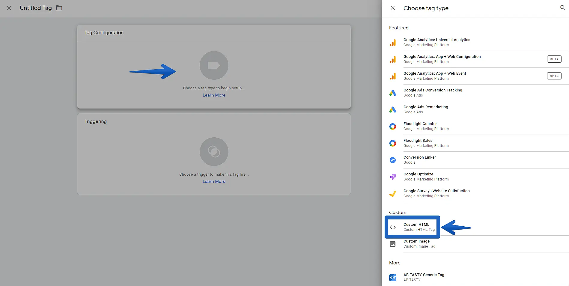 Click to choose a tag type and select "Custom HTML".