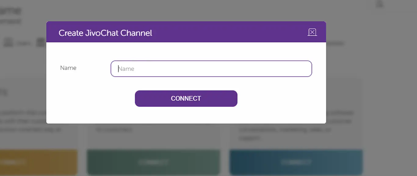 In the pop-up window enter a name for your JivoChat channel and click "Connect".