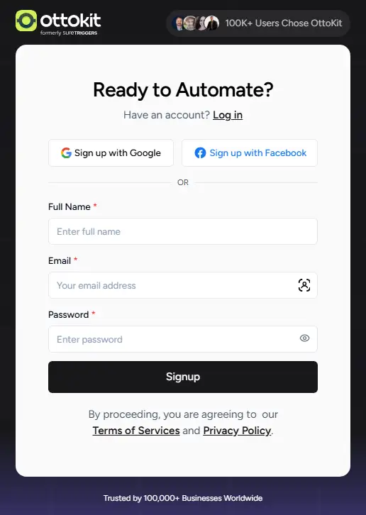 Step 1: Sign Up or Log In to Ottokit