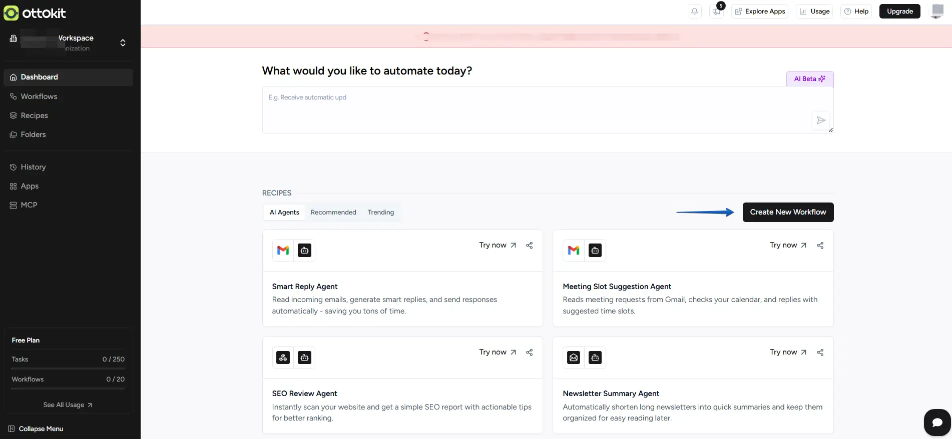 Once you are logged into your Ottokit dashboard, you can begin creating your automation.