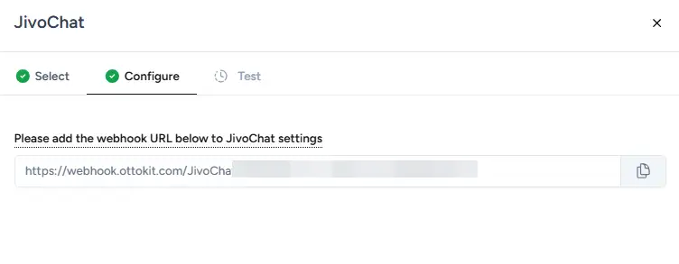 Ottokit will generate a unique webhook URL. Click the copy icon to copy it to your clipboard.