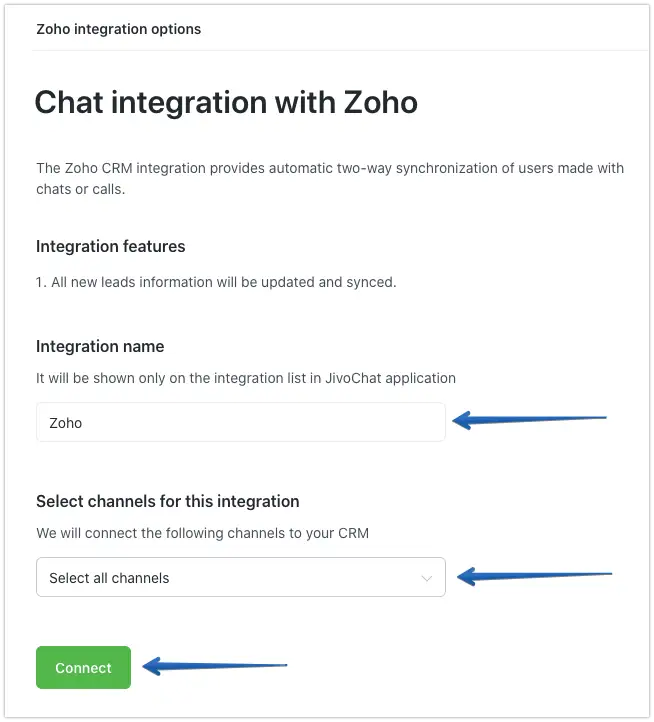 This integration allows you to generate a new lead in Zoho CRM from finished chats in JivoChat. It saves contact data and chat logs with each generated client.