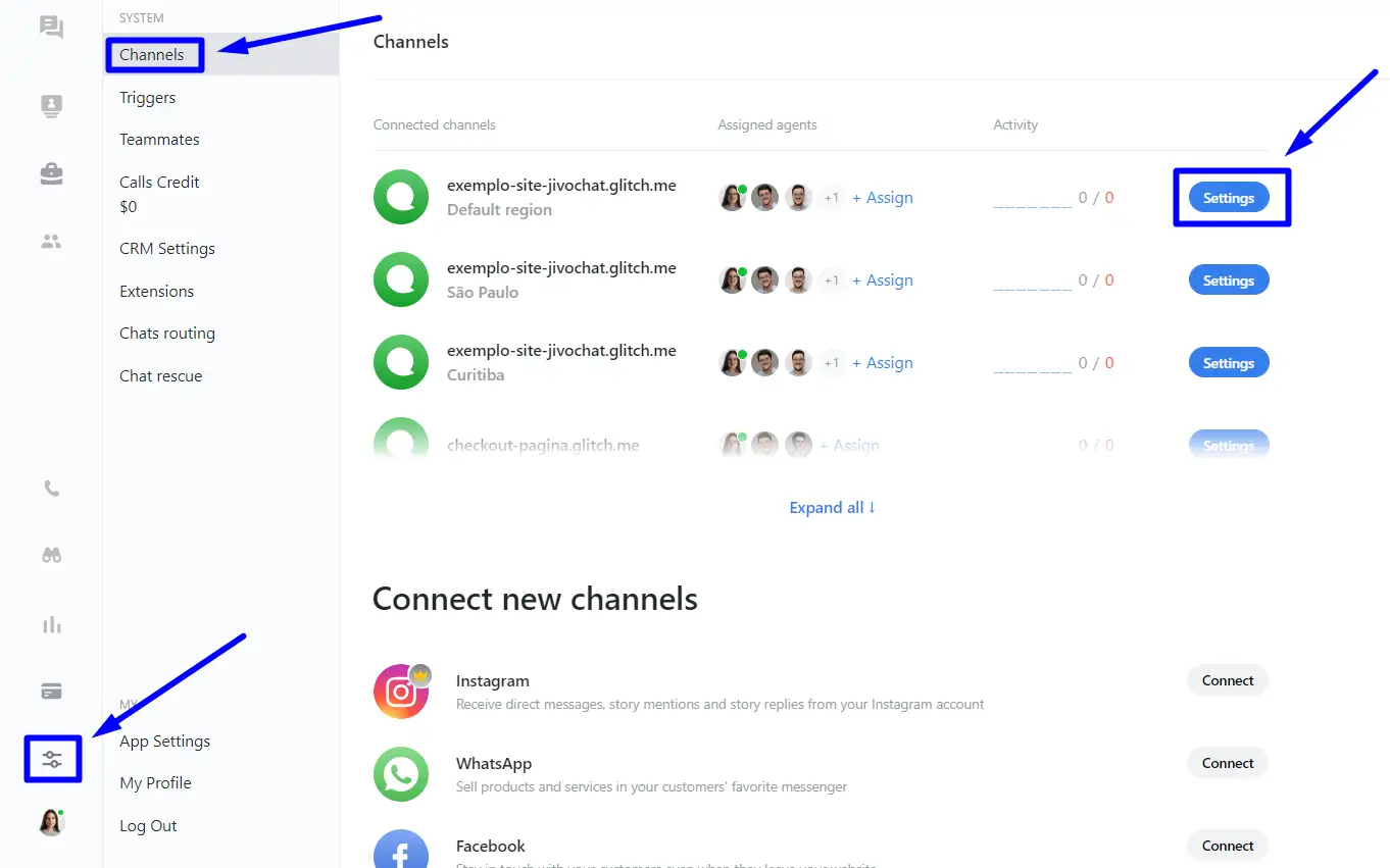 To activate the functionality you will need to log in to your desktop or web app. Next, click on the "Manage" button located in the lower left corner. In the menu that you’ll see, click on "Channels", then Settings (next to your site name).