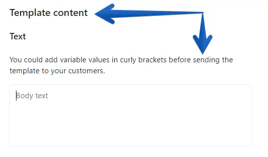 In "Template content", in the "Text" section, you will place the message according to the template category selected above. Remember that Meta will evaluate whether the text entered will be in accordance with the selected category.