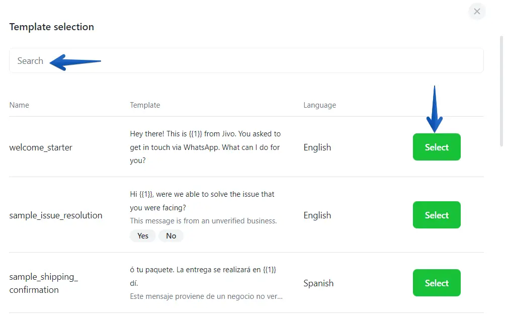 You can also check your templates status from JivoChat. In JivoChat we will show if the templates was approved or rejected.