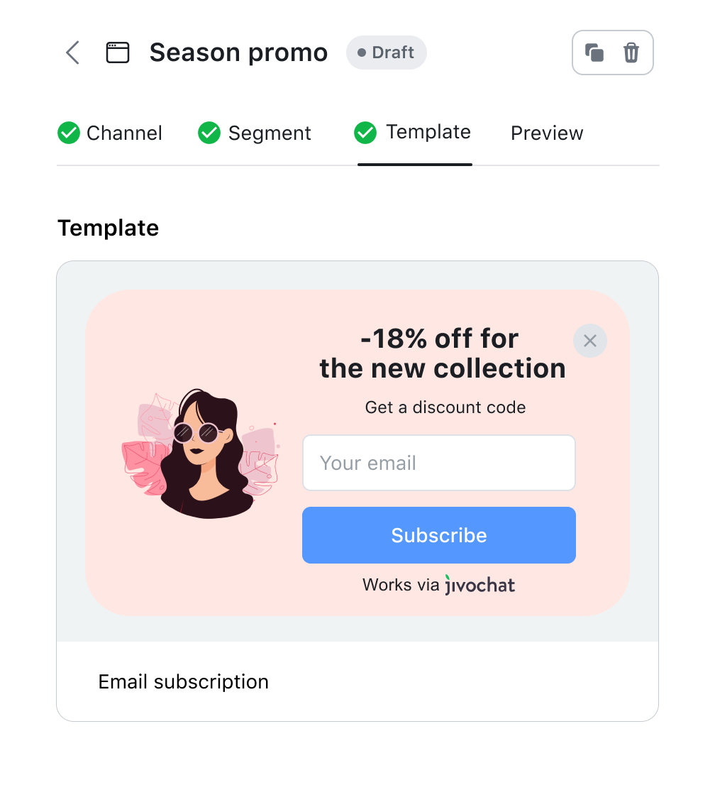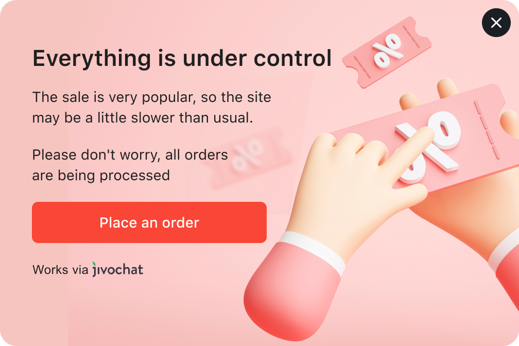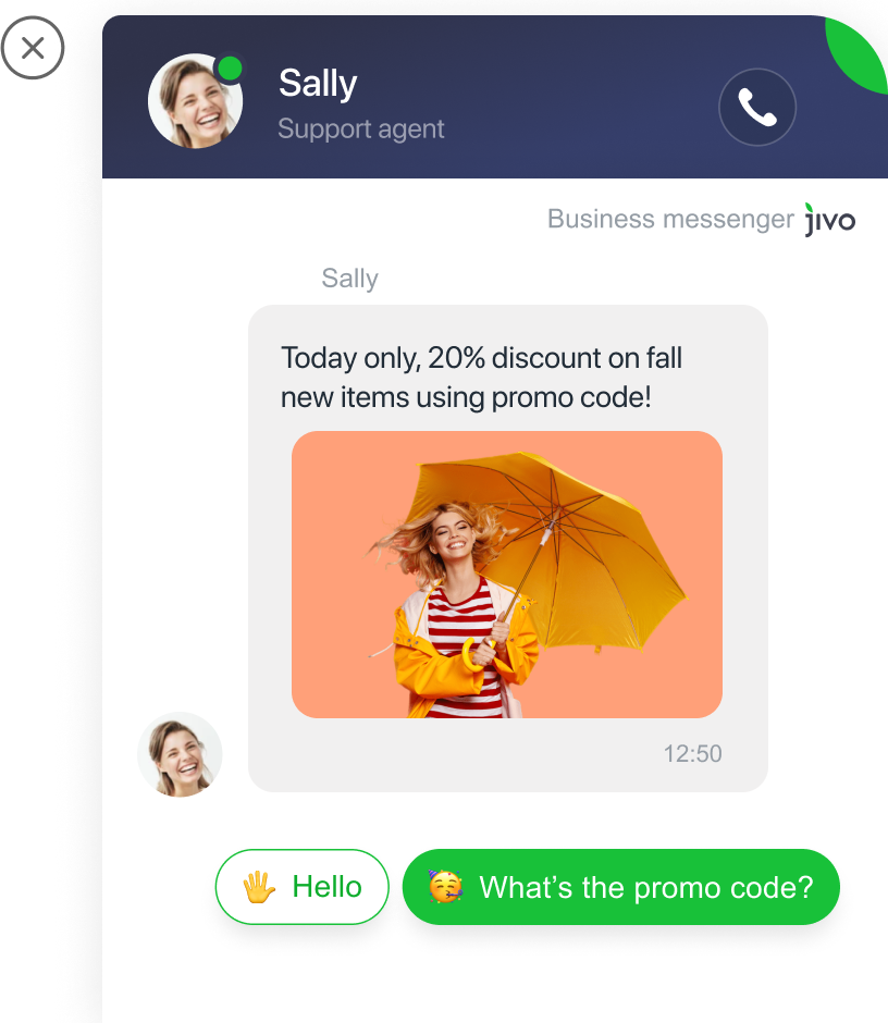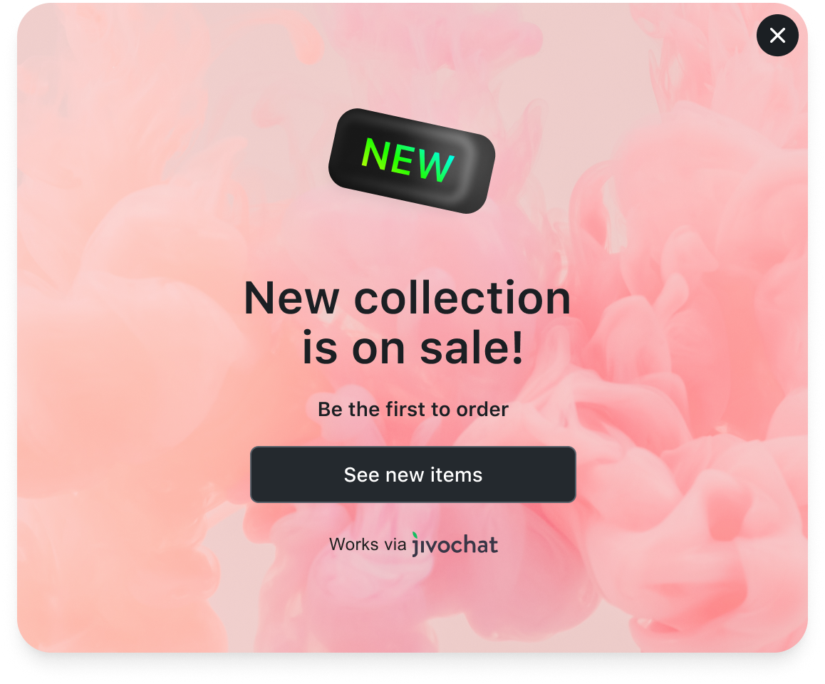 Have you got ongoing promotions that need more attention? Adding info about current promos into your website’s section may not be enough. Set up a popup window. on selected pages to let more visitors know about current offers. Share promo codes with selected visitors directly in the chat using chat campaigns
