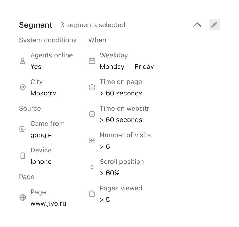Use Jivo Marketing tools to effectively work with your website traffic.