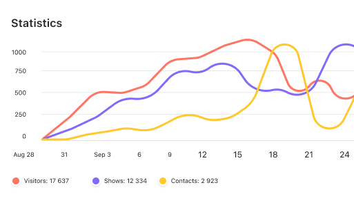 Track the effectiveness of your marketing tools with statistics that shows your customer funnel and goal dynamics over time