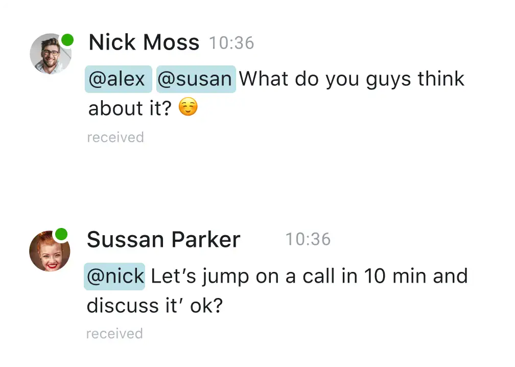 Call out to a specific colleague, online employees, or all group members