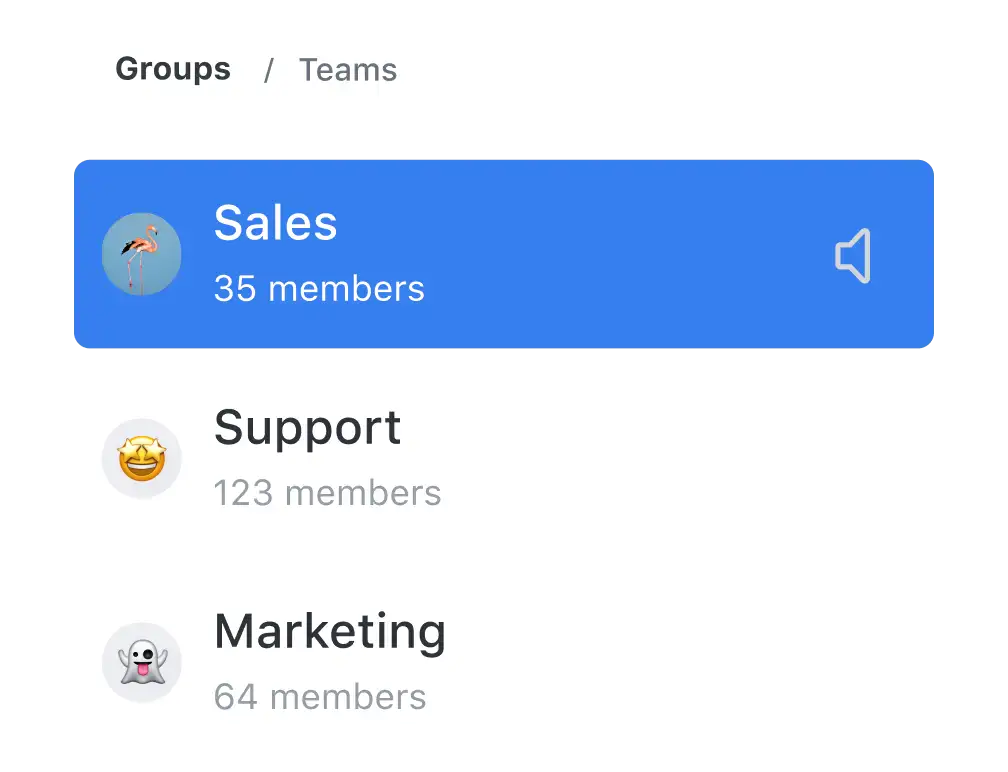 Create private, department or company groups and informal chats of course